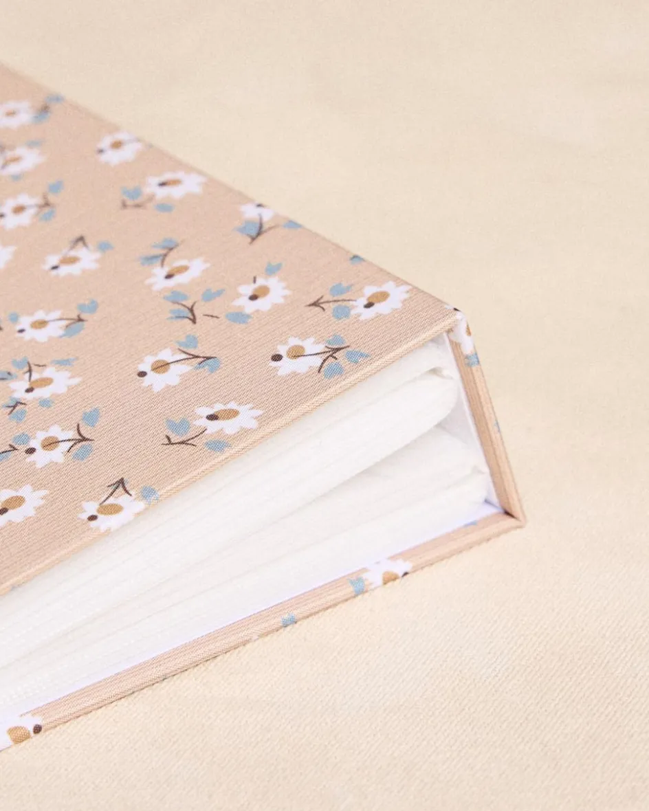 Album photo couleur moka avec imprimer floral délicat, reliure de haute qualité et capacité de plusieurs photographies.