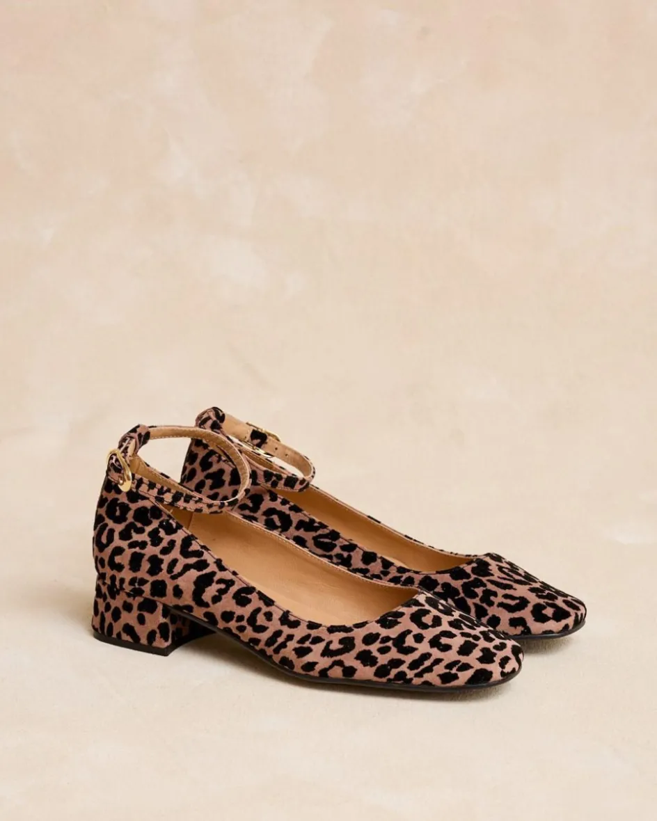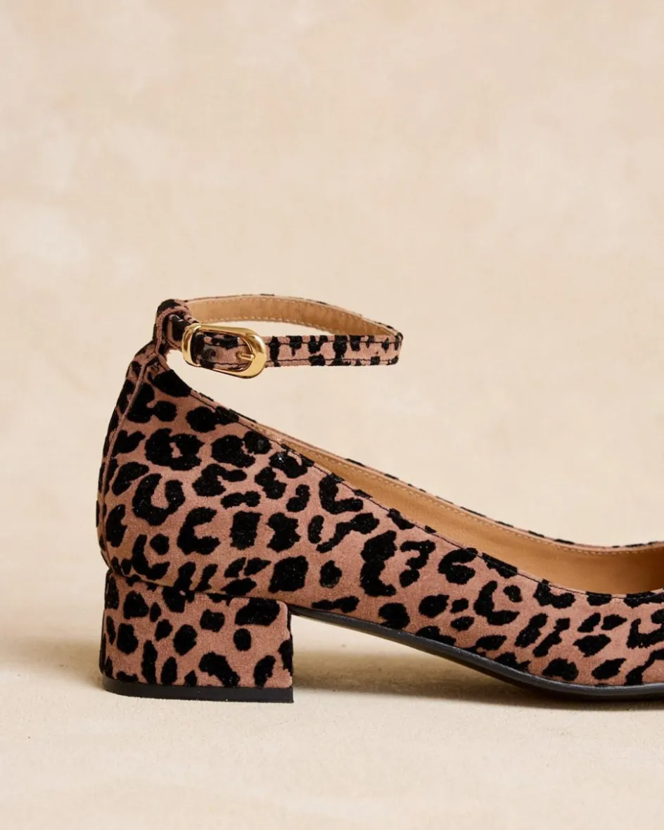 Imprimé animalier en daim Mary Jane avec une fine bride à la cheville, un crochet à boucle. Bout rond et semelle plate. Très confortable et idéal pour vos looks les plus audacieux à porter au quotidien, la touche parfaite pour vos tenues avec un jean. De plus, l’imprimé animalier est une tendance pour cet automne-hiver.