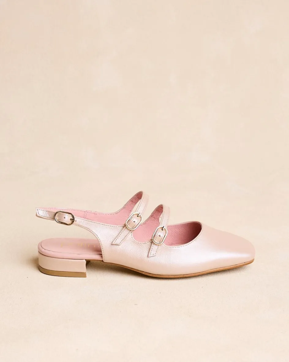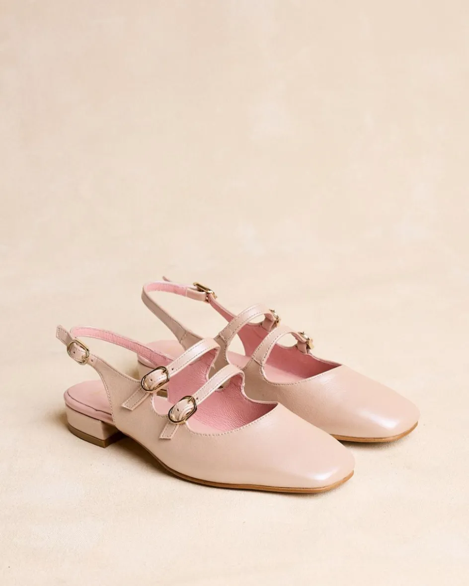 Escarpins Mary Jane de couleur nude. Fermeture à double à lanière réglable avec boucles. Bout légèrement carré. Encolure arrondie. Une chaussure stylée et élégante pour un usage quotidien.