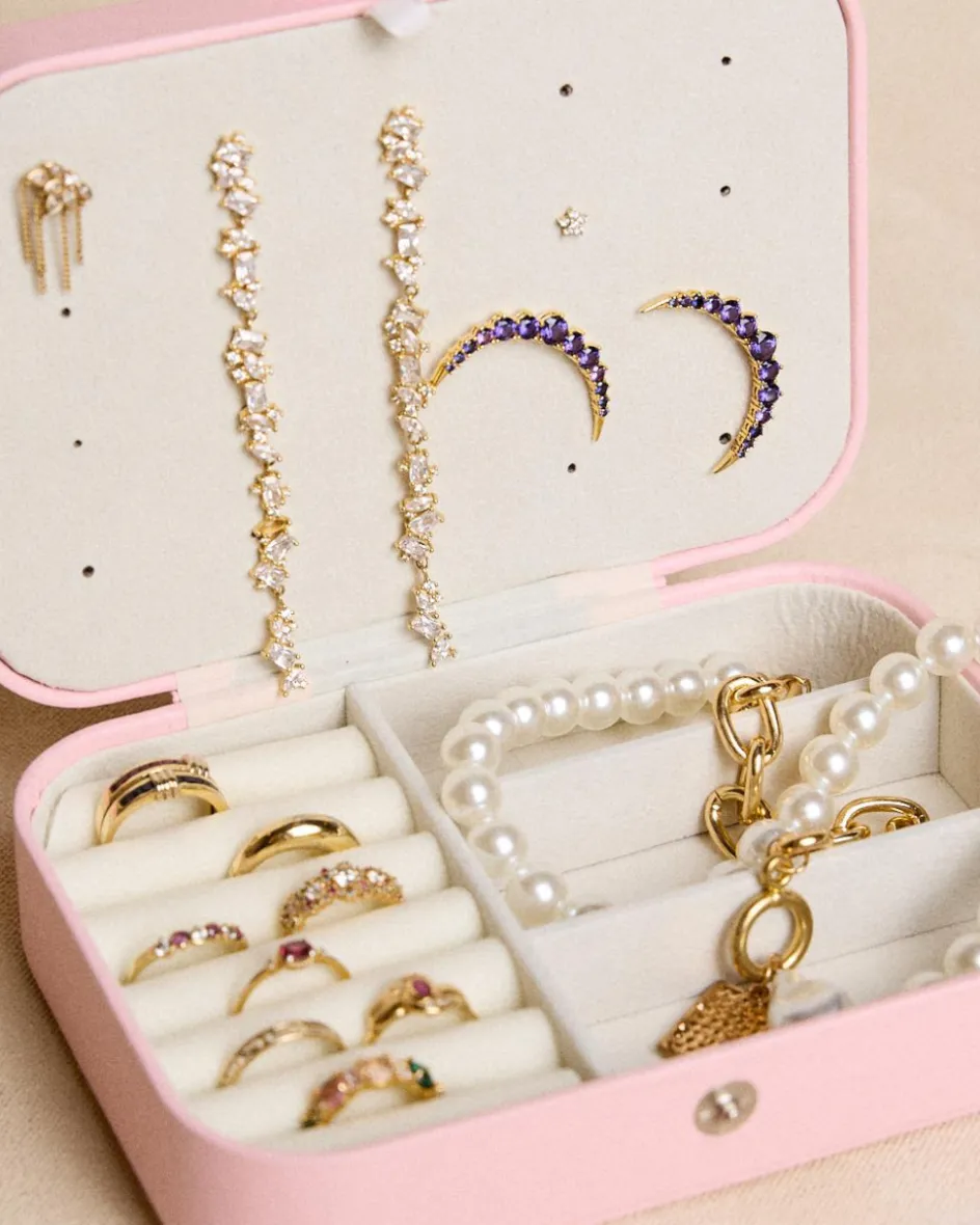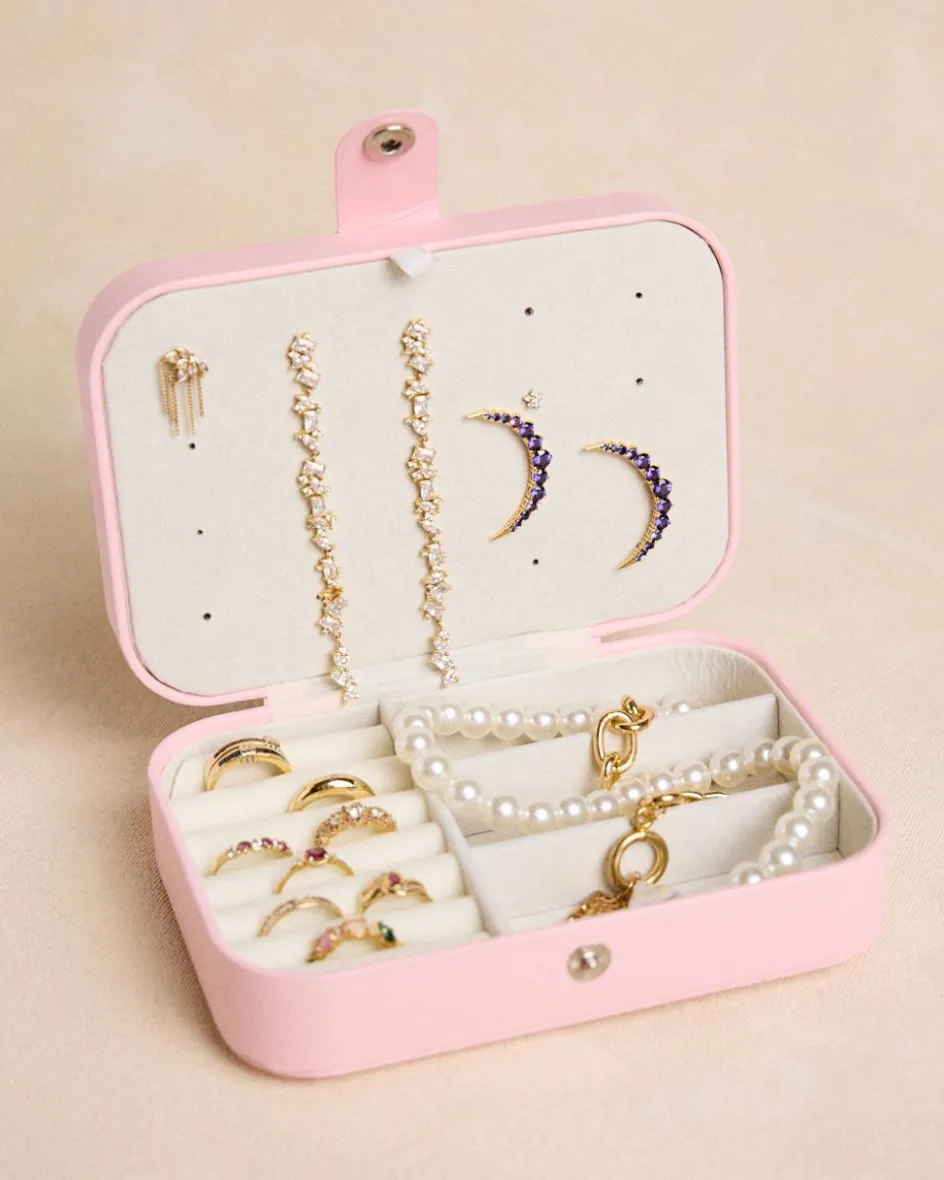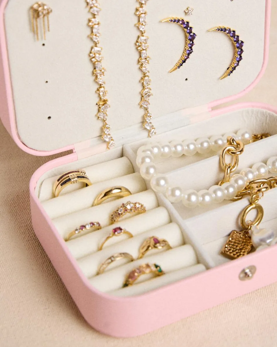 Rangez et organisez vos accessoires avec cette bijoutier rectangulaire rose. Son design compact et élégant comporte des compartiments rembourrés idéaux pour protéger vos bagues, boucles d’oreilles, colliers et bracelets