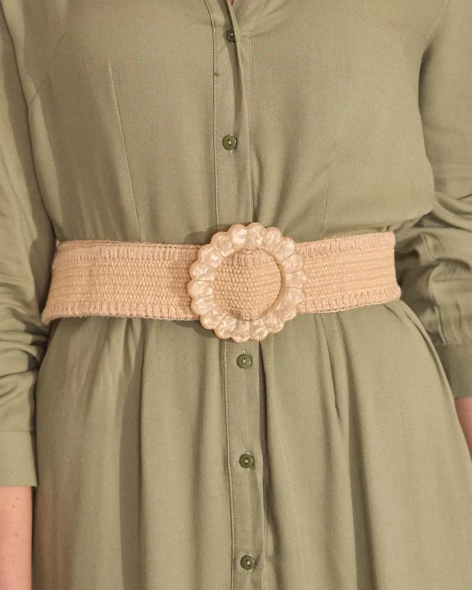 Robe midi avec chemise coupée dans un ton vert olive. Conçu avec des manches longues, des boutons sur le devant et une ceinture réglable pour mettre en valeur la silhouette. Une pièce élégante et polyvalente, parfaite pour toutes les occasions.