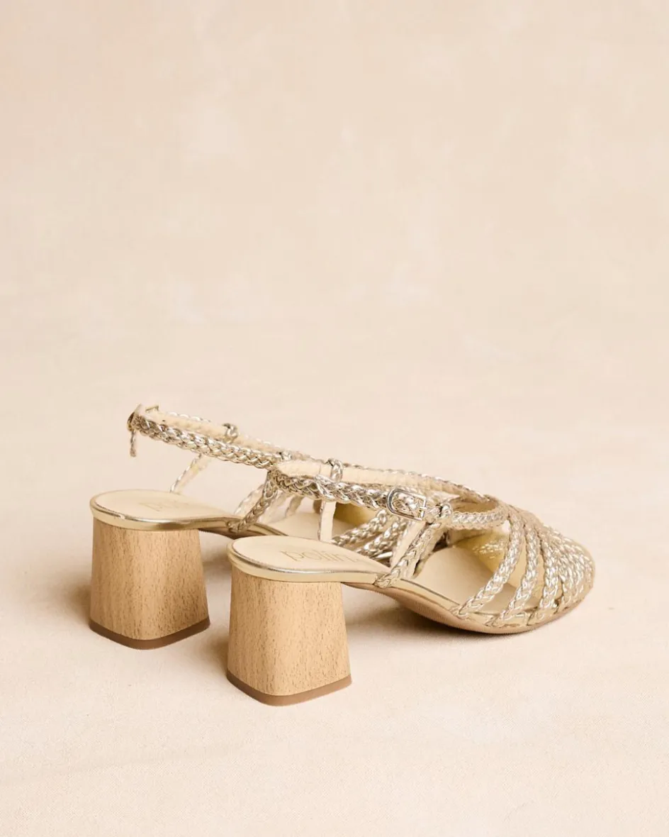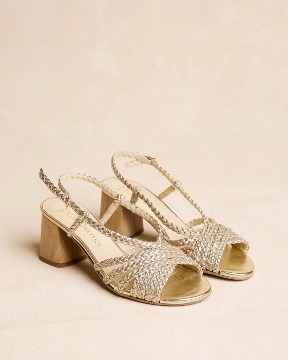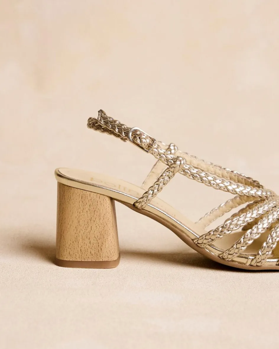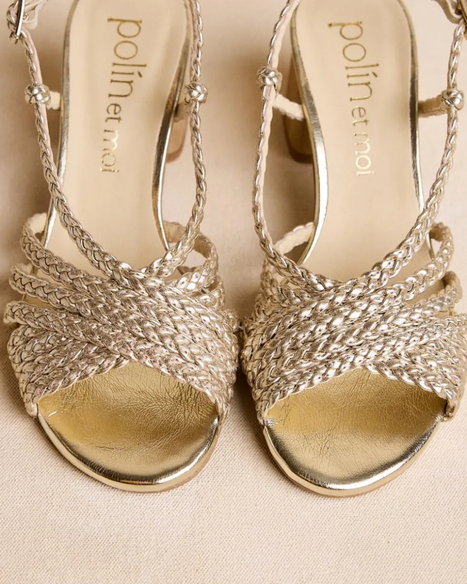 Sandale argentée au design élégant et tressées. Cette sandale est dotée de plusieurs brides tressées croisées à l’avant, offrant maintien et style, tandis qu’une sangle arrière réglable assure un ajustement parfait.