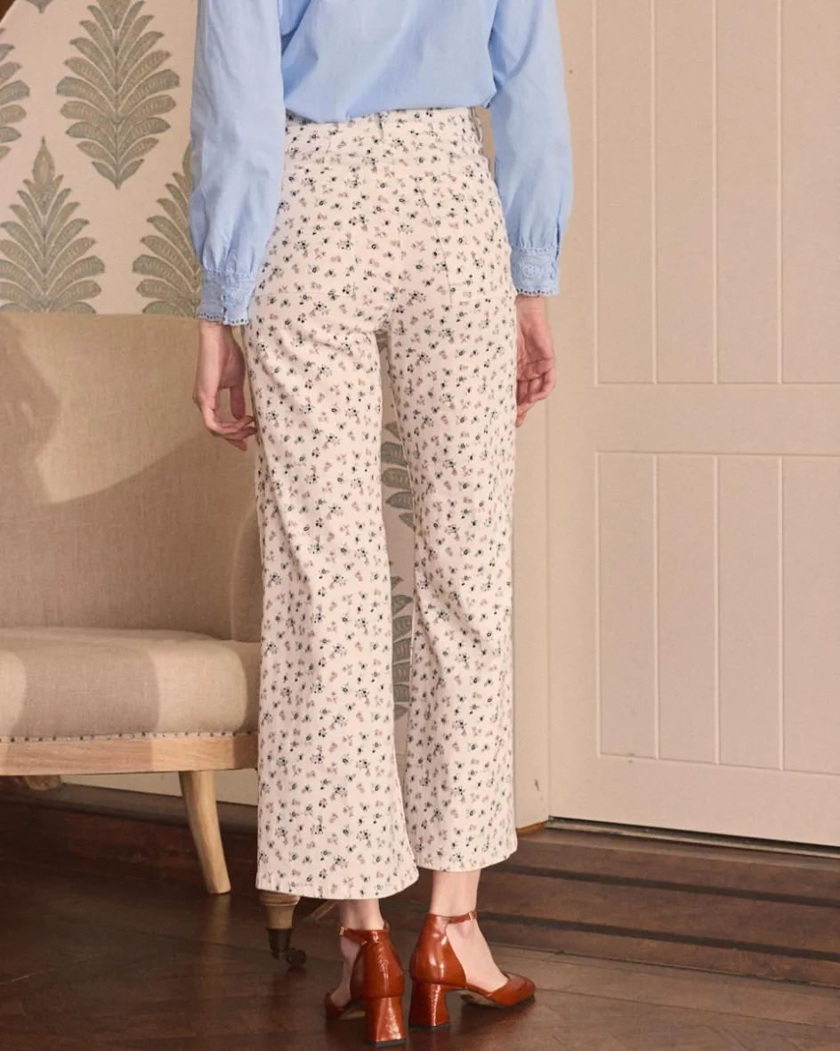 Pantalon taille haute dans un ton brut avec de délicats imprimer floraux. Sa coupe droite et son tissu léger en font une option fraîche et polyvalente pour toutes les occasions. Parfait à combiner avec des chemisiers élégants ou des chemises décontractées.