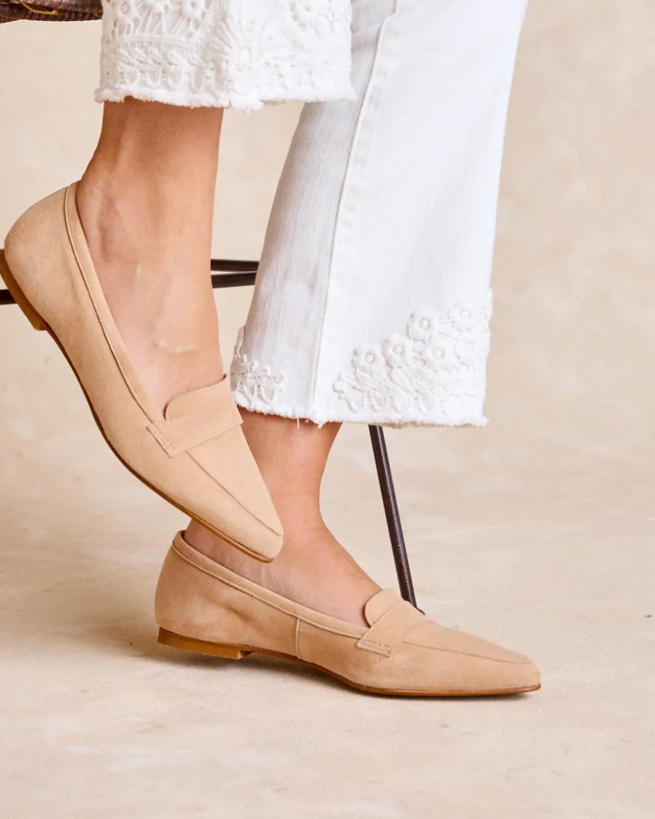 Mocassin plat cuir de couleur sable. Un modèle élégant avec un extérieur made in cuir. Un design d’une légèreté et d’un confort extrêmes ; Résistant, intemporel et très polyvalent.