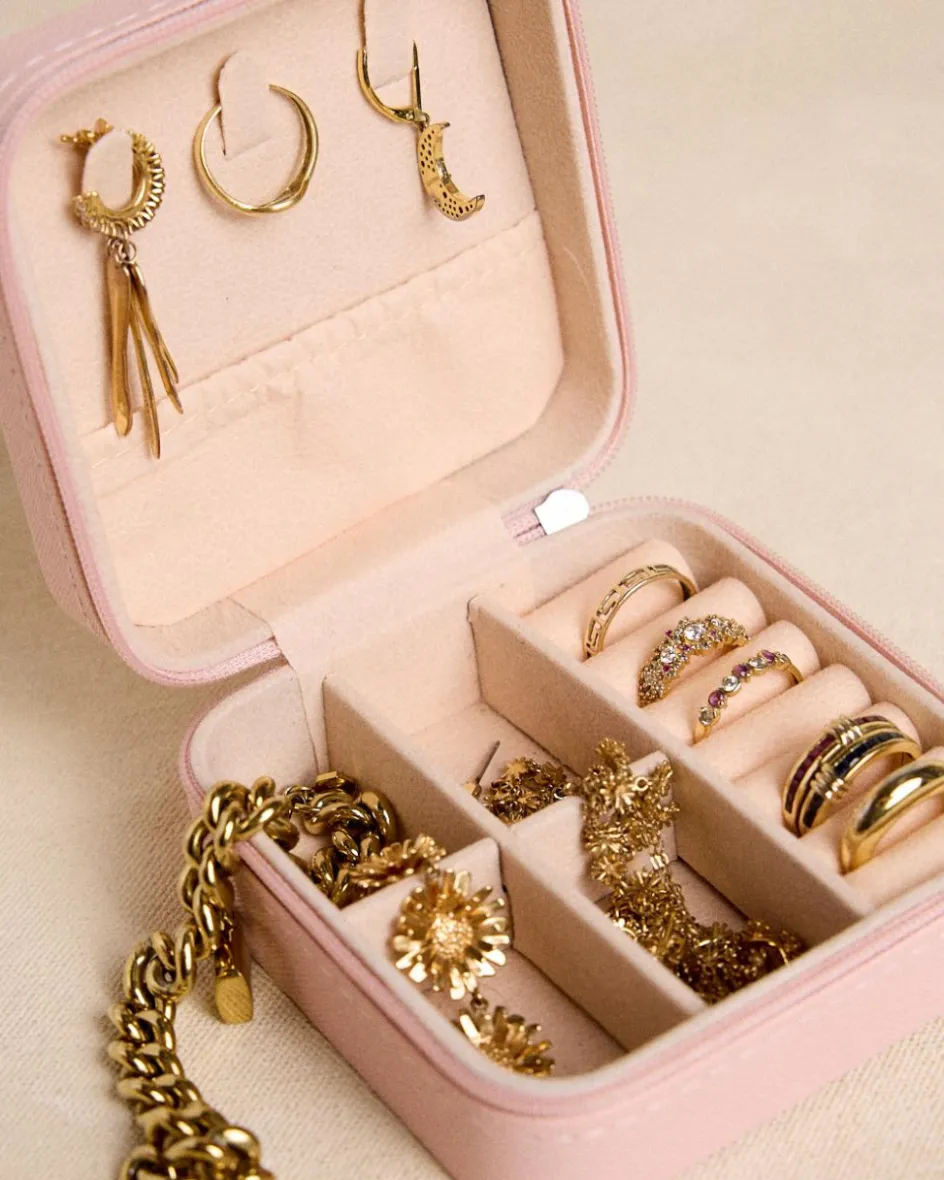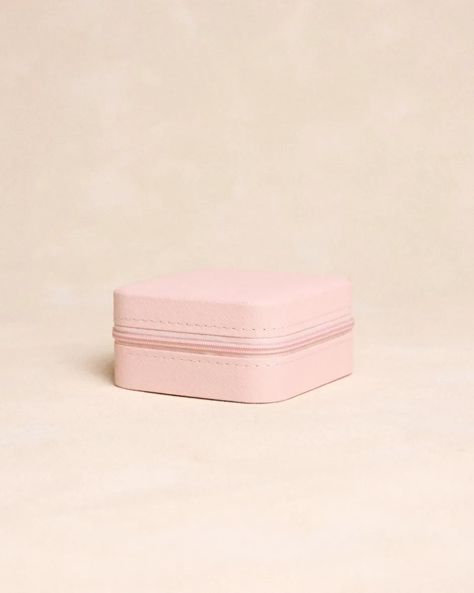 bijoutier carré de couleur maquillage avec des compartiments rembourrés, une fermeture sécurisée et une taille parfaite pour ranger des bijoux à la maison ou en déplacement.