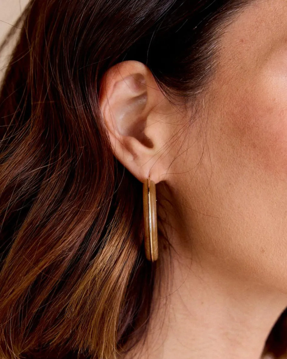 Ces créoles de taille moyenne en marron se distinguent par leur design classique et intemporel, leur forme ronde et minimaliste en fait un accessoire léger et confortable, parfait pour un usage quotidien.