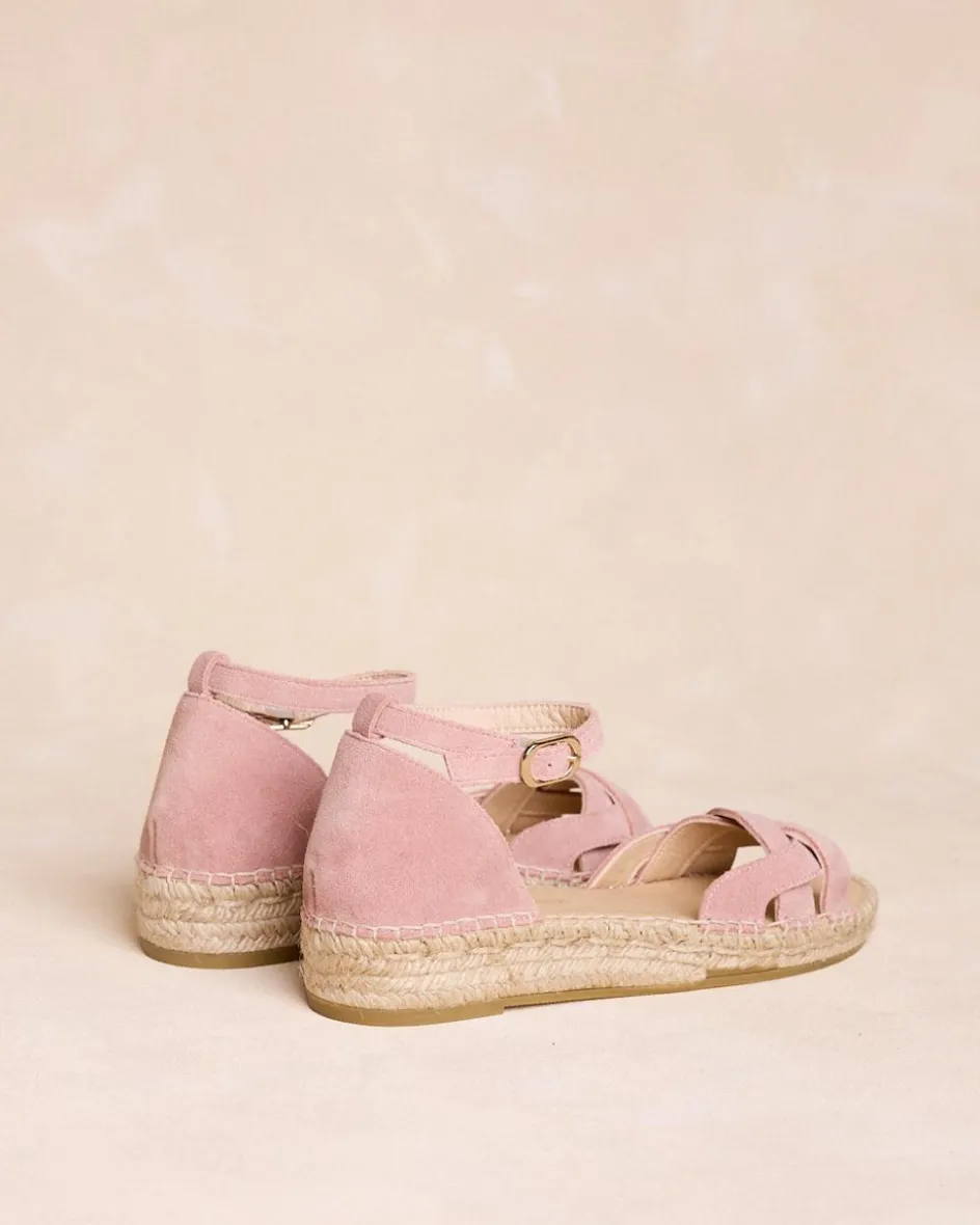 Espadrilles de couleur maquillage avec semelle en jute et tige croisée. Ils ont un bracelet de cheville réglable qui offre un soutien et une touche féminine, parfait pour des looks frais et délicats.