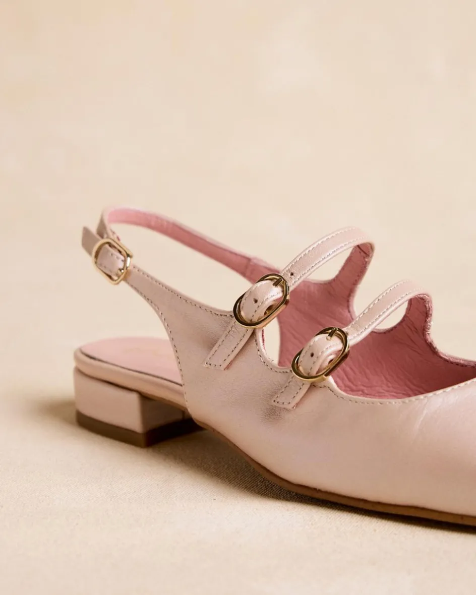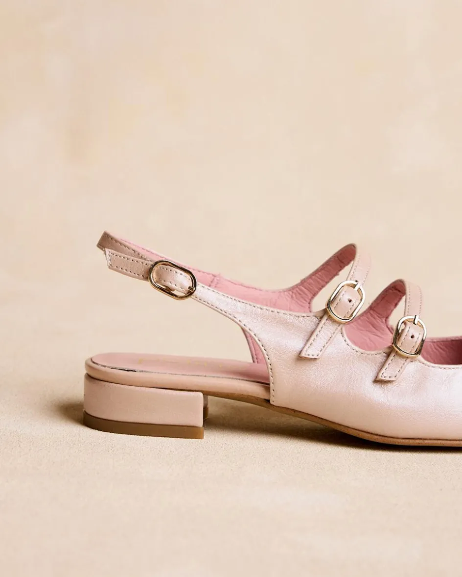 Escarpins Mary Jane de couleur nude. Fermeture à double à lanière réglable avec boucles. Bout légèrement carré. Encolure arrondie. Une chaussure stylée et élégante pour un usage quotidien.