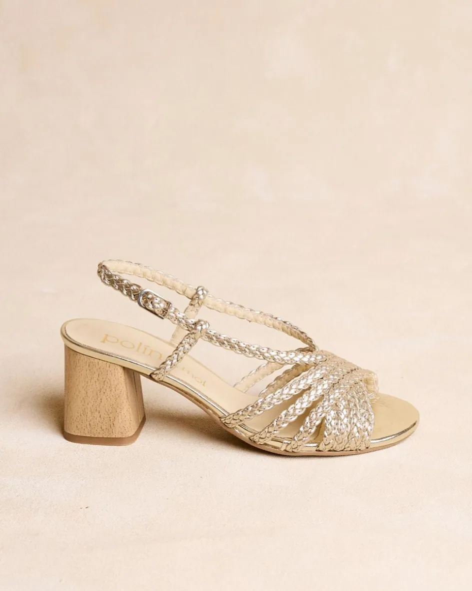 Sandale argentée au design élégant et tressées. Cette sandale est dotée de plusieurs brides tressées croisées à l’avant, offrant maintien et style, tandis qu’une sangle arrière réglable assure un ajustement parfait.